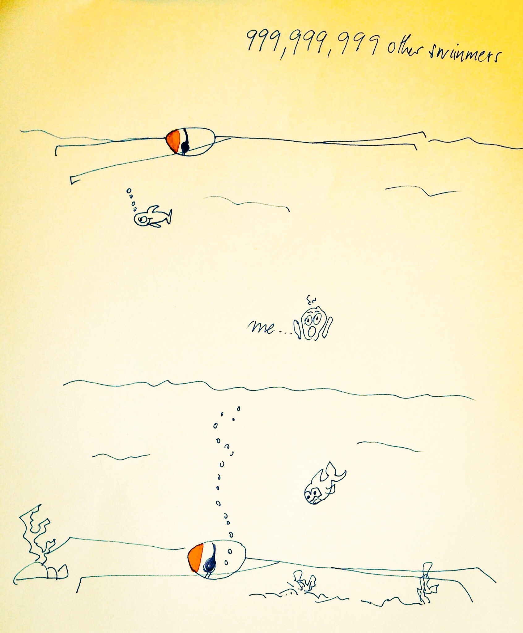 Nevertheless floating is essential, all the more in marathon swimming. There is a lot of energy for me to save by floating more naturally. So I have no choice but to include dedicated drills in my training programme. Next time you come by the local swimming pool, if you can’t see me swimming up and down the lane, take a look at the bottom. Chances are you’ll find me down there, practising my floating skills…