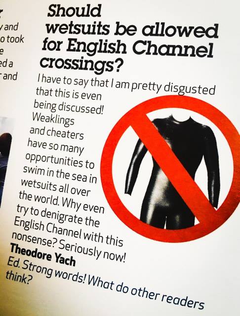 Last time I checked, swimming in Speedos doesn’t give anyone an exclusive right on the English Channel or any other body of water for that matter. There should be room enough for everyone. I think the growing interest for open water swimming in general is a great development for our sport. Whether people do it in wetsuits or in swimming trunks is irrelevant. Trends evolve and so should mentalities. Why should the amazing crossings we do be the prerogative of a selected group?