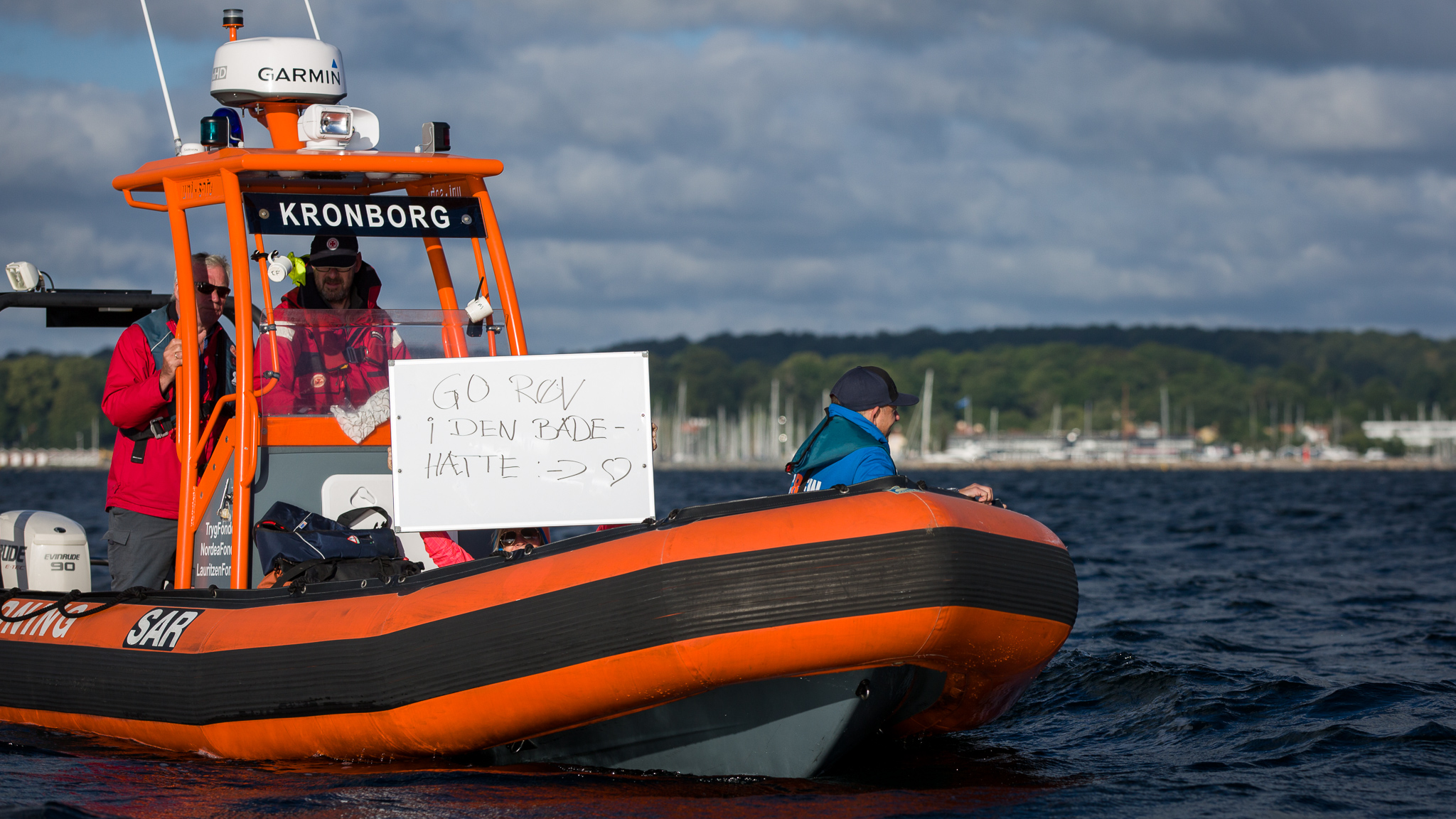 Besides my regular team, Thomas and Karsten from the Danish Sea Rescue Society (Dansk Søredningsselskab Helsingør) had offered to follow me this year. Those two guys made an incredible job! They were extremely attentive and dedicated. They really looked like they enjoyed the day, talking with the big ships on the radio to make them skirt around us, lesser mortals. I felt completely safe all the way, even when the weather decided to challenge us more than expected.