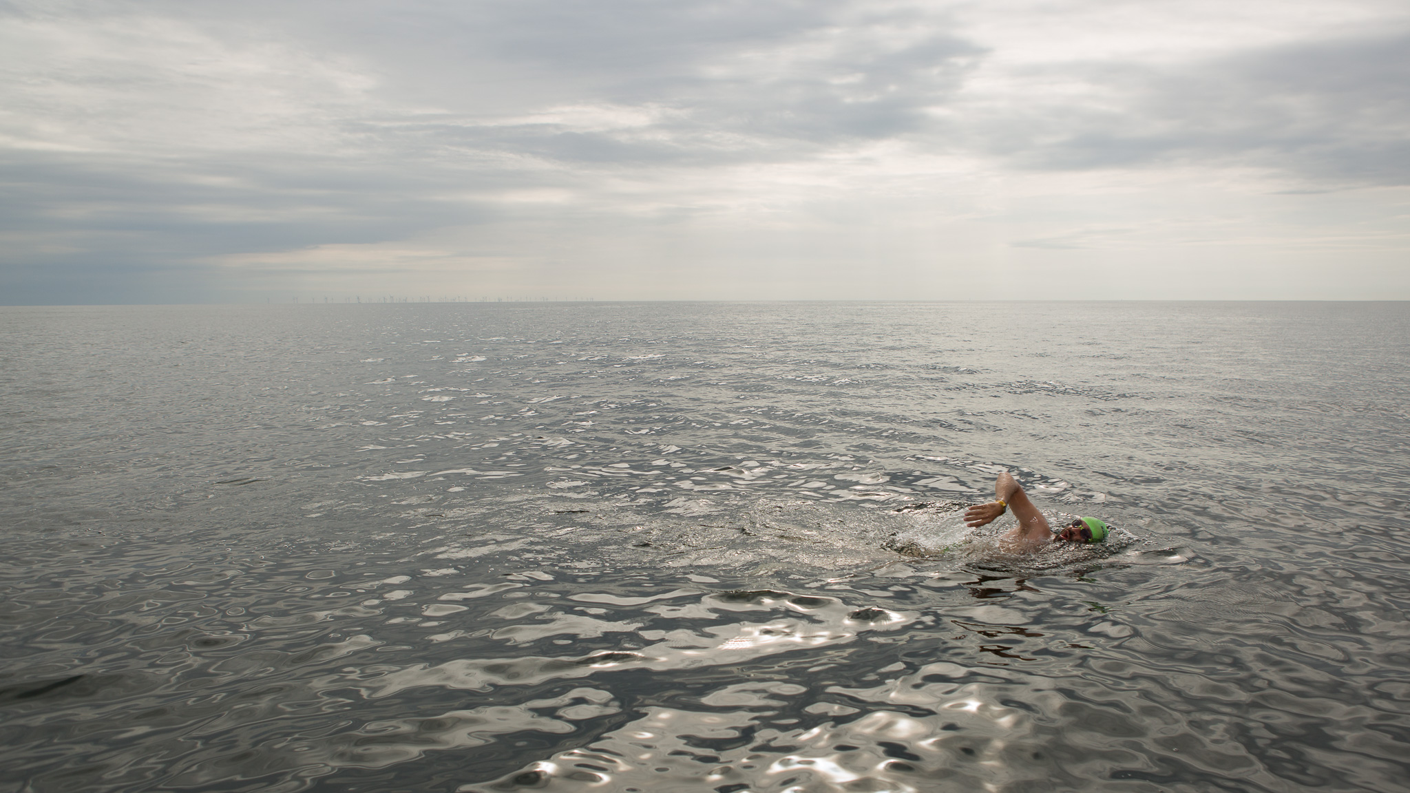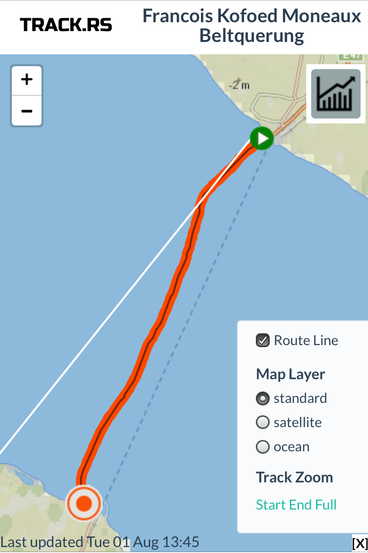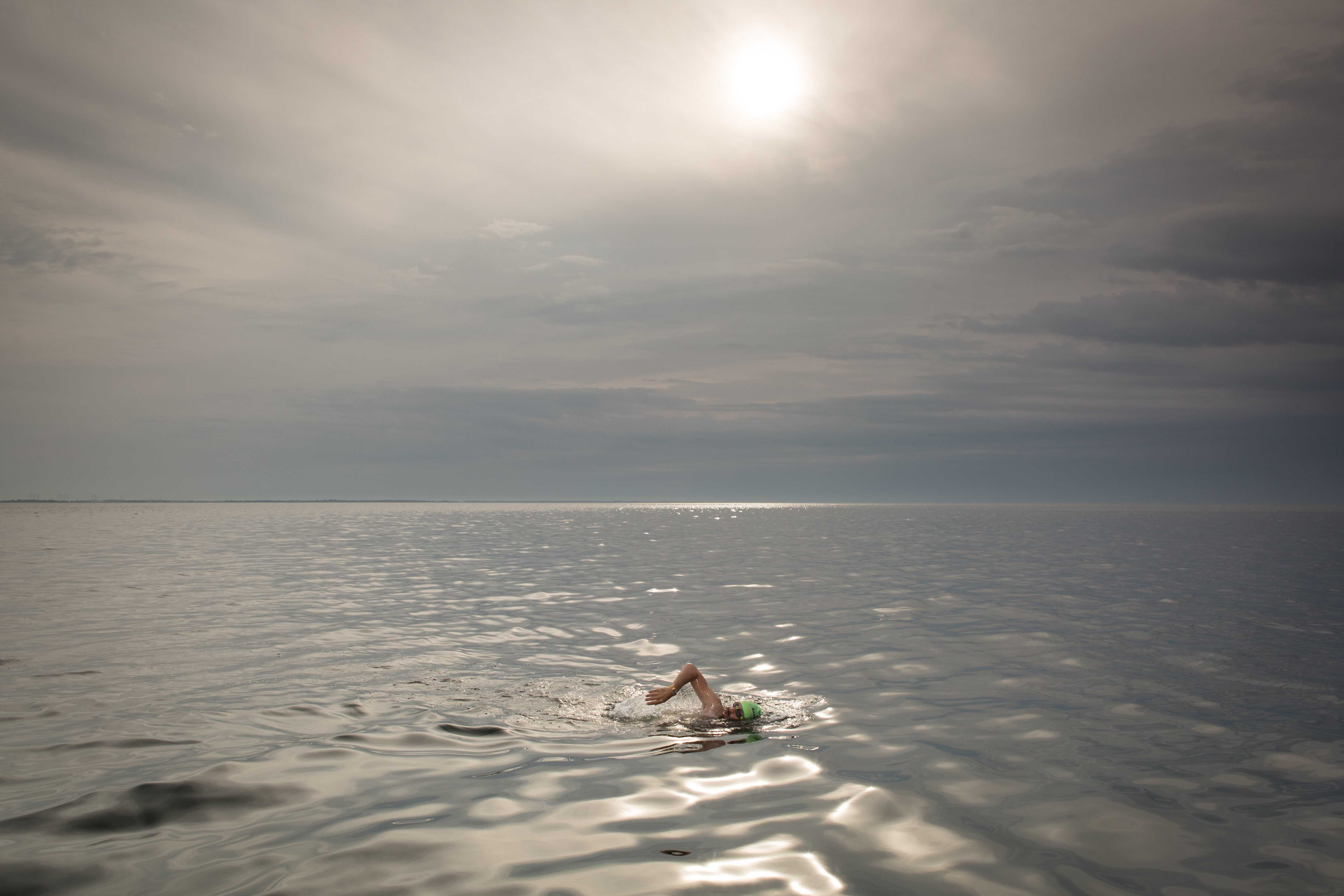 This year’s crossing between Denmark and Germany (“Beltquerung”) is the most undramatic swim I’ve ever had so far. The water temperature was 16.6 °C (and even reached 18 °C at some point ☀️😎). There was barely any wind. It was rather cloudy, but the special light made the sea shine like quicksilver. And we even had a few hours of sunshine. The conditions were perfect.
