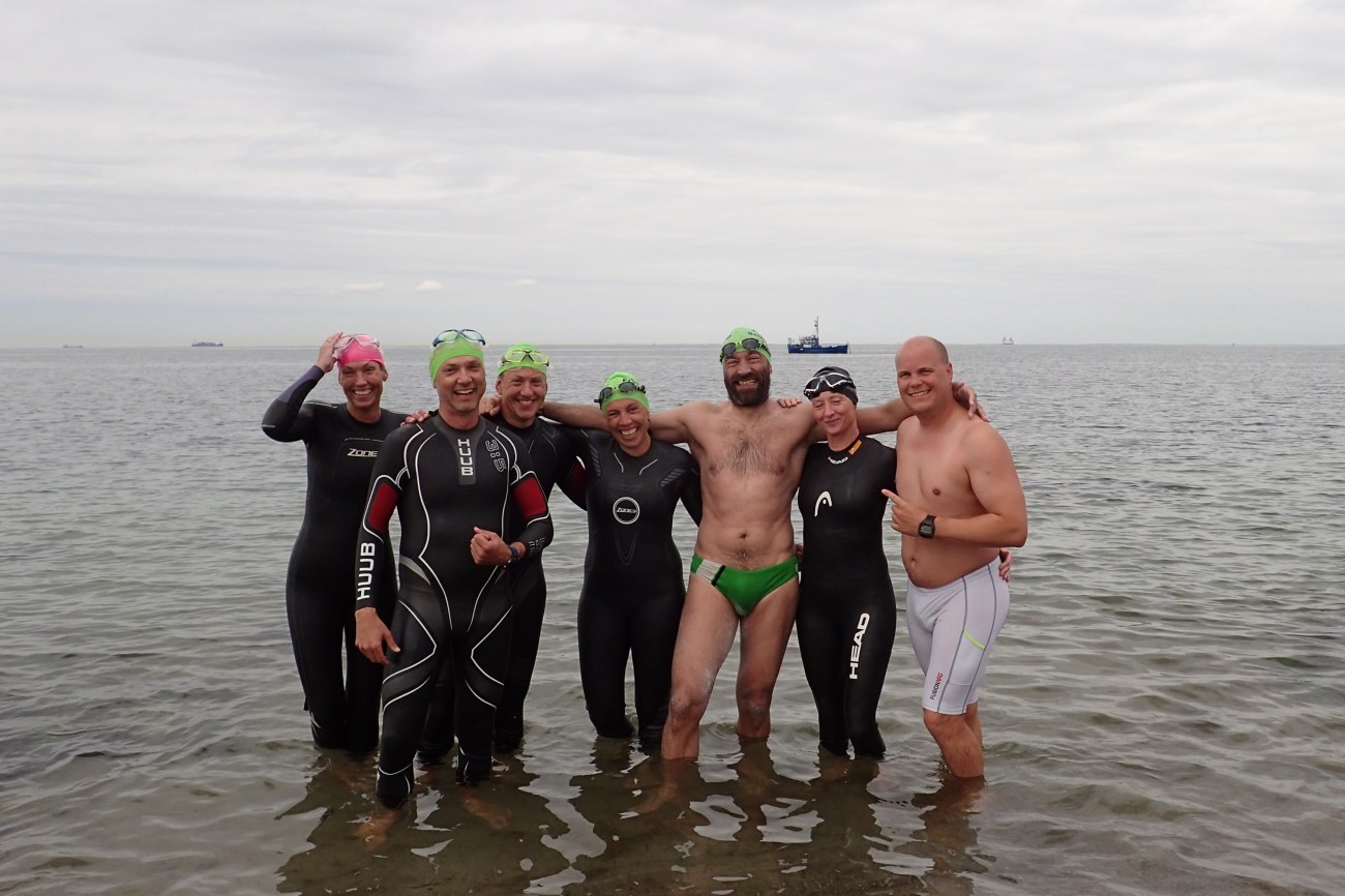 Interestingly, the most touching moment for me was not when I cleared the water and Ursula, one of the event organizers, greeted me officially as the first Belgian to cross the Fehmarn Belt. Don’t get me wrong – I did feel honoured and I was all over the moon. But the most touching moment for me was when I saw my team take on their wetsuits on the boat and get ready to swim the last 500 m with me. This is when the magic happened for me. I knew we had done it. Three years of intensive work had finally paid off and I got to share the very last minutes with them. Swimming ashore with my team literally covering my back until the very last drop of water, I’d never felt so happy and privileged. Love is everything.